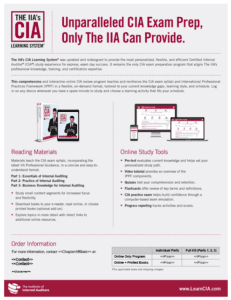 • Affiliates can offer instructor-led CIA courses to local members and the local business community. Utilize The IIA’s CIA Learning System student materials and instructor resources. When the Learning System is updated, unsold inventory can be exchanged for updated materials.